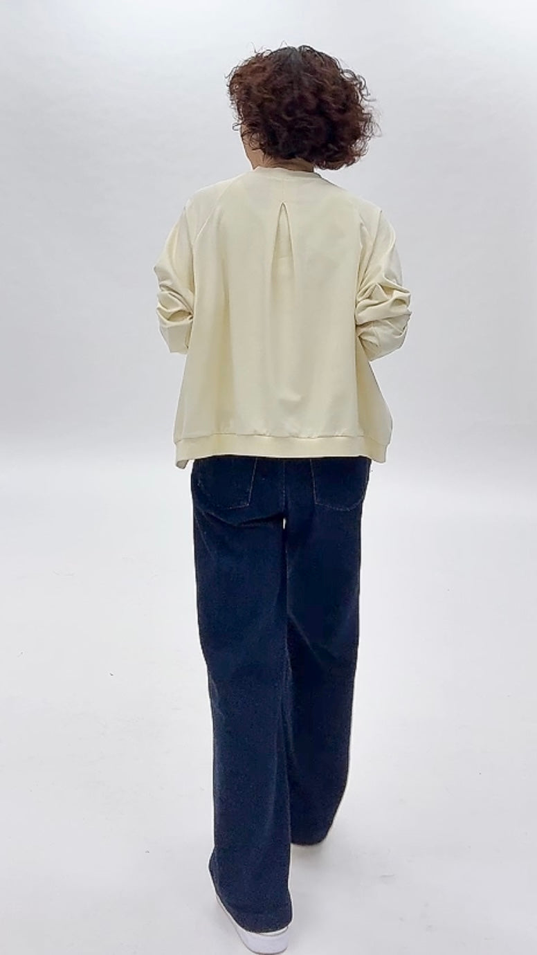 袖口と裾のリブ仕様が全体をすっきりとまとめ、ほどよいリラックス感を演出しながらもバランスの取れたデザインに仕上げました。