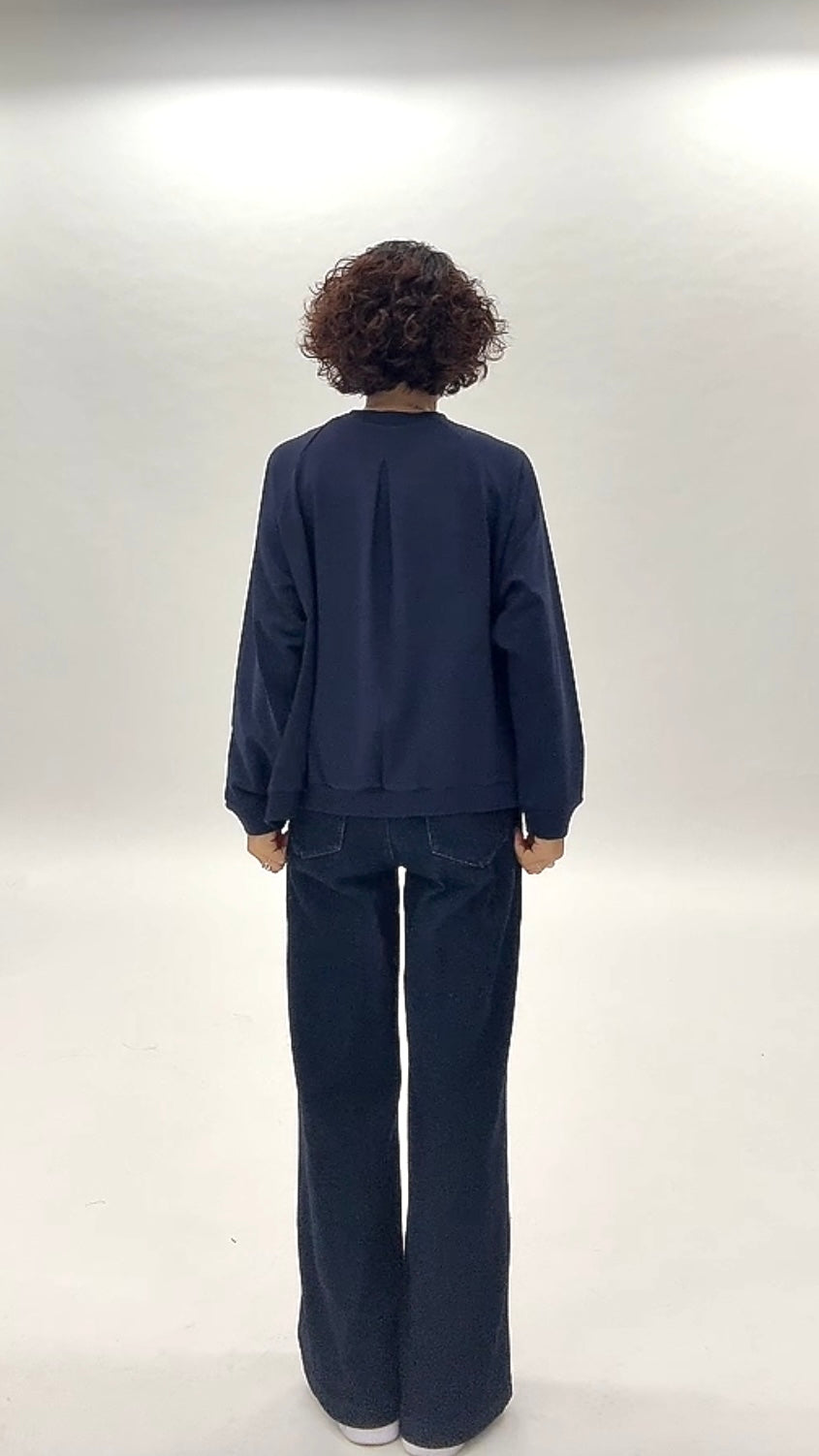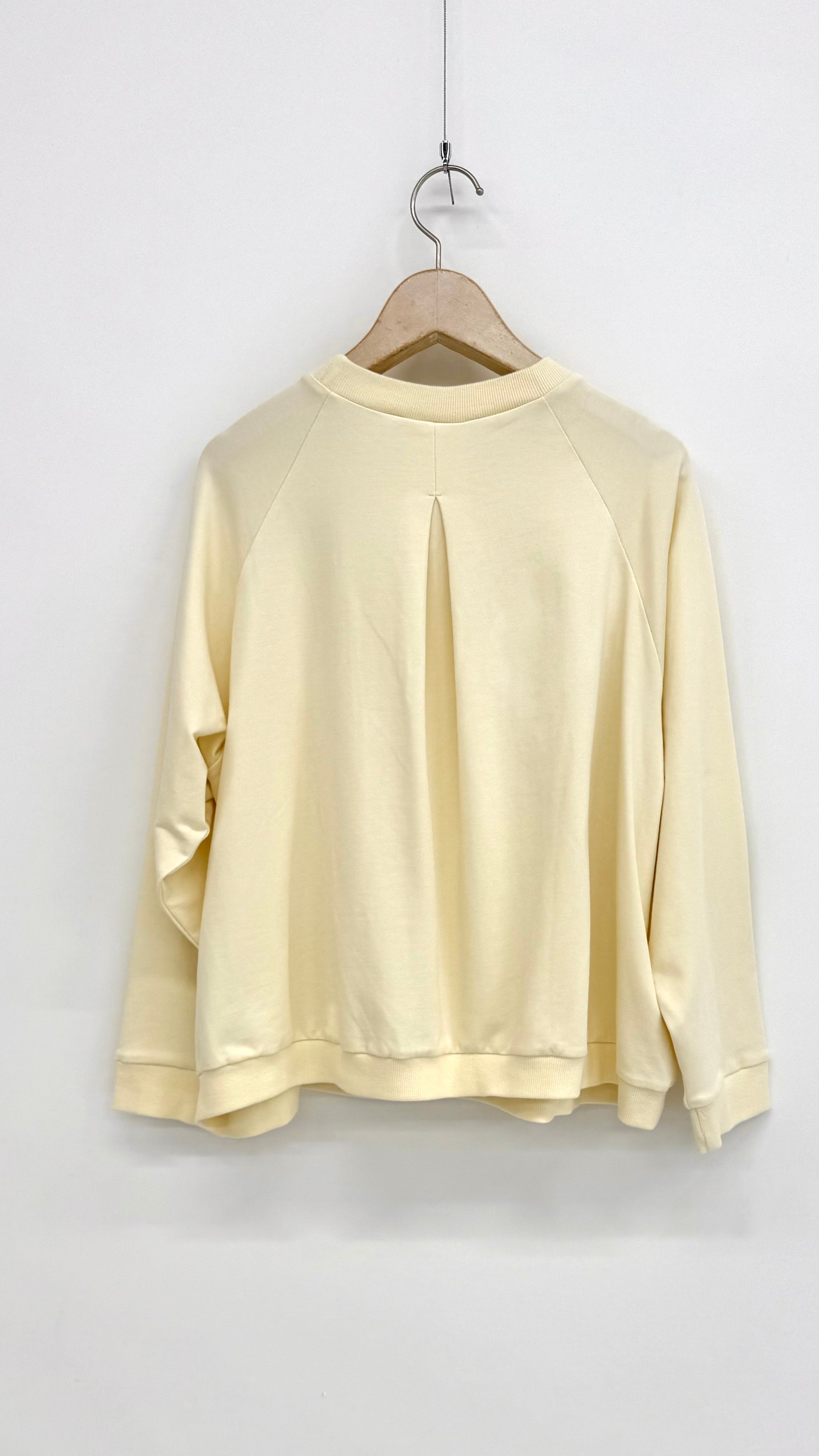ラグランスリーブが肩のラインを優しく見せ、ゆとりのあるサイズ感が抜け感のあるシルエットを実現。