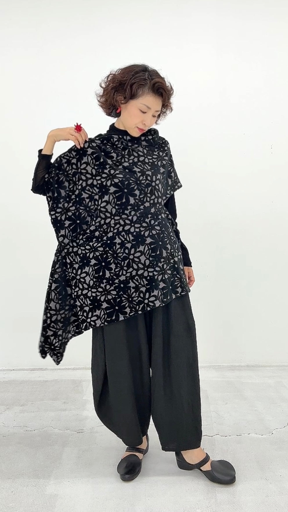 花柄ベロア ポンチョ ベスト 日本製 (057-4891)
