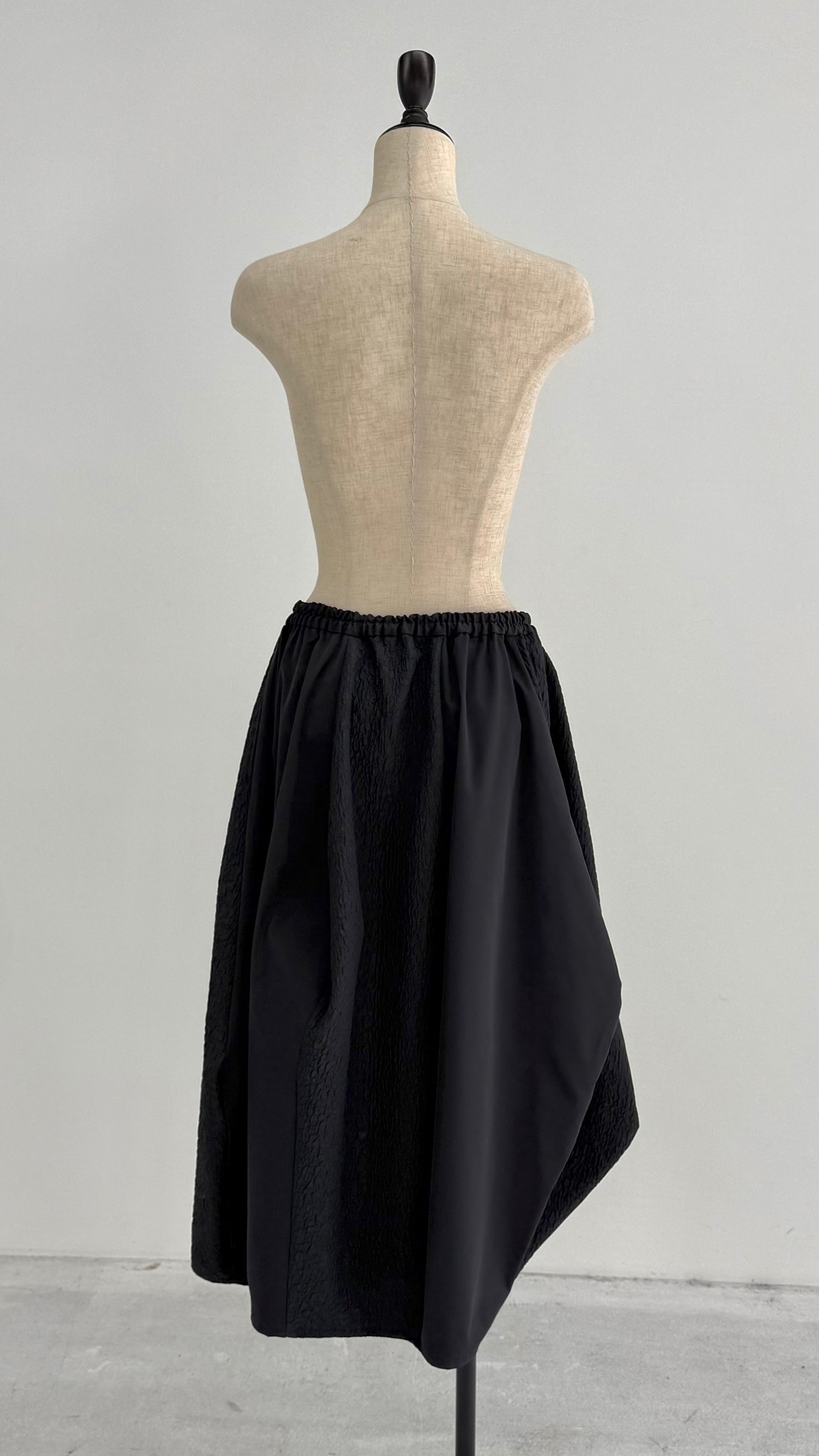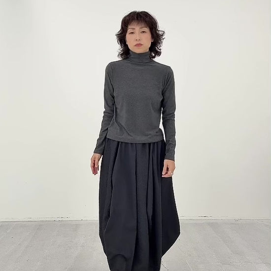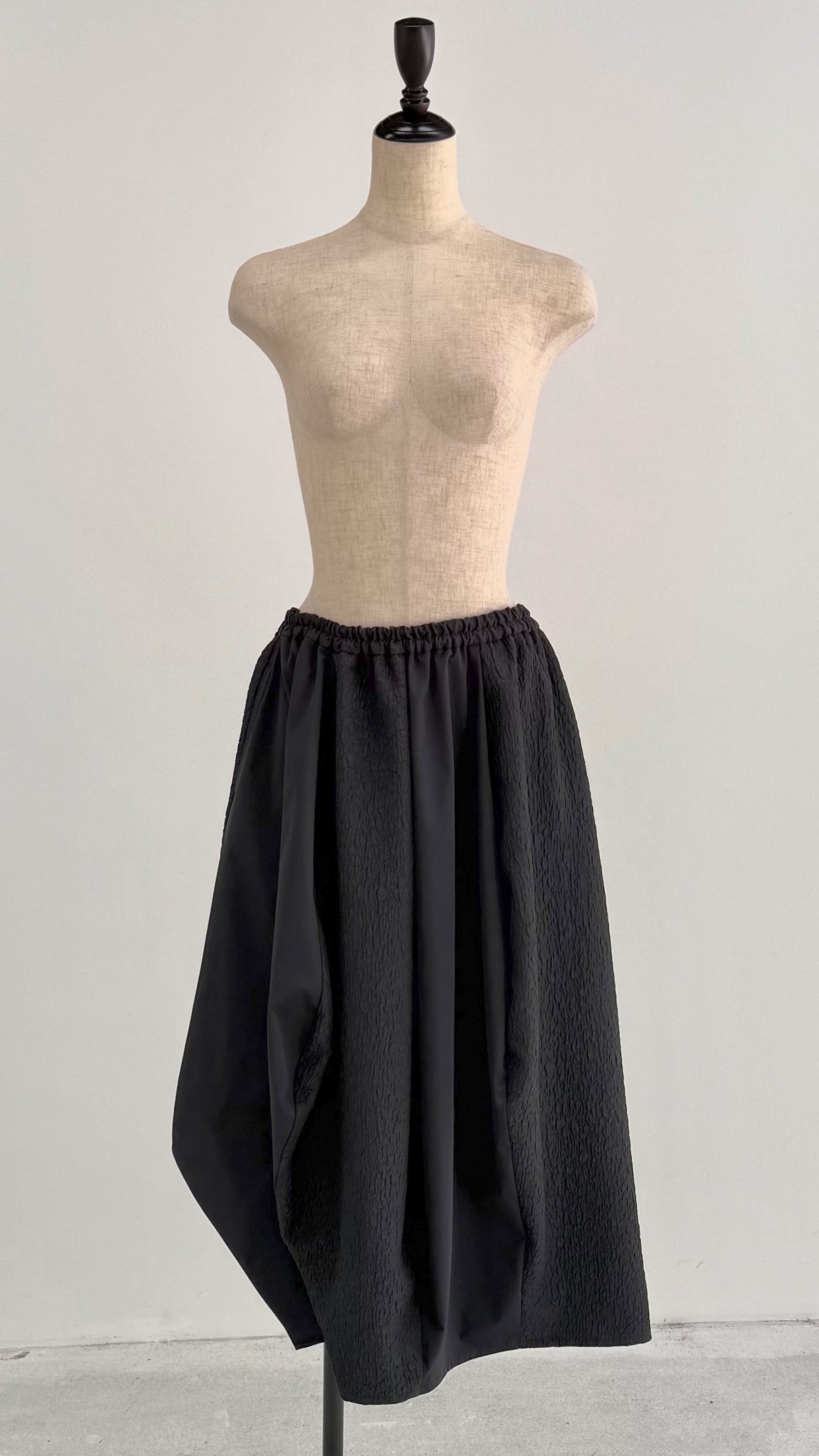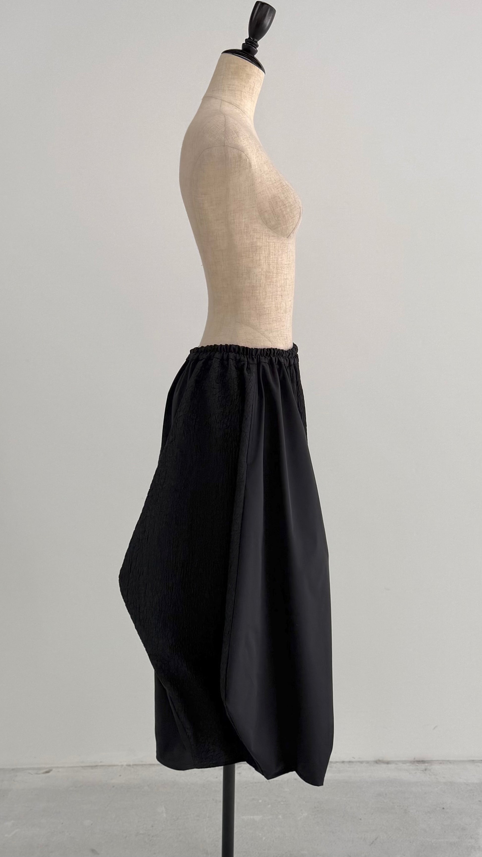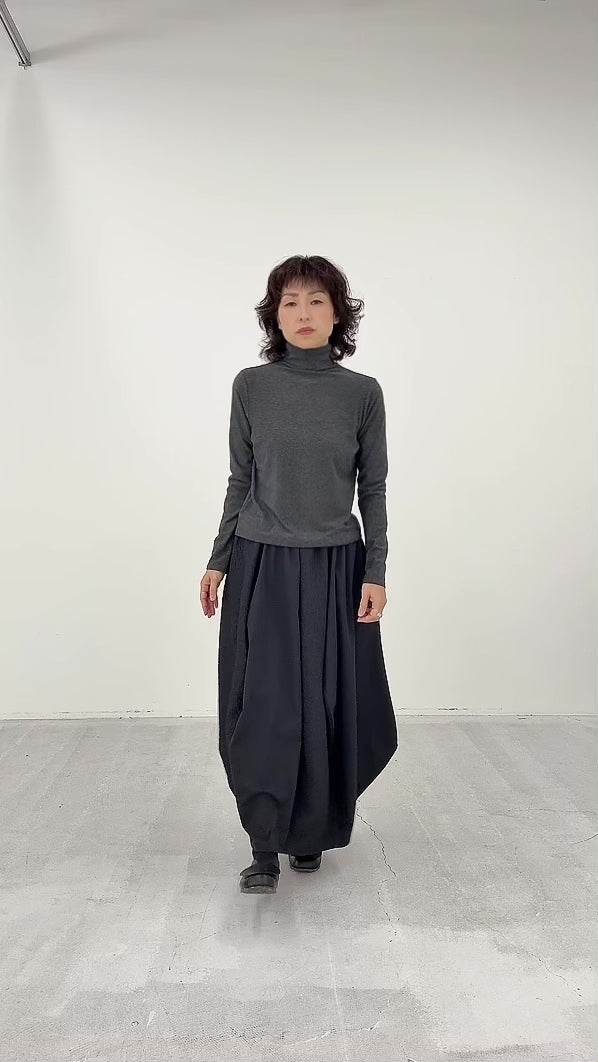 バルーンシルエットで裾に丸みを持たせ、立体的で表情のあるフォルム。