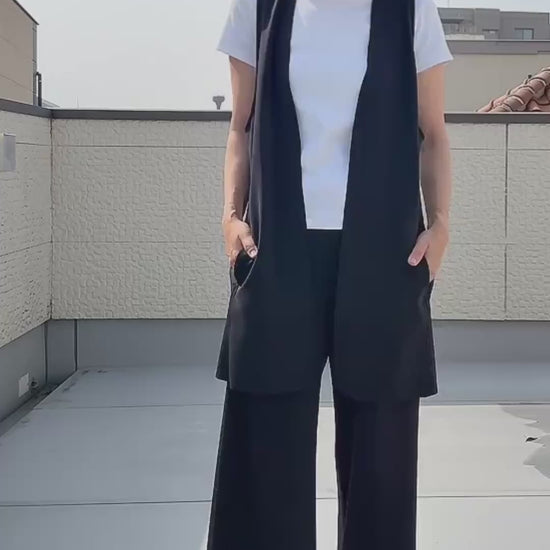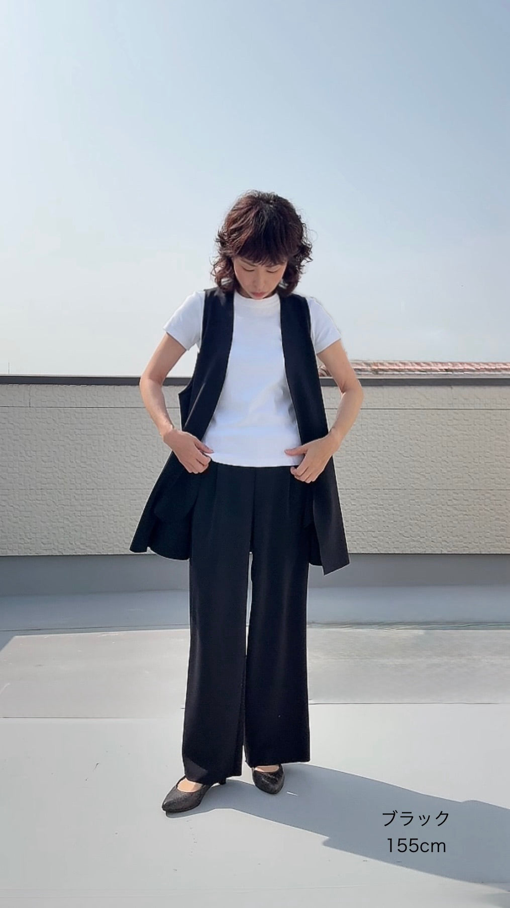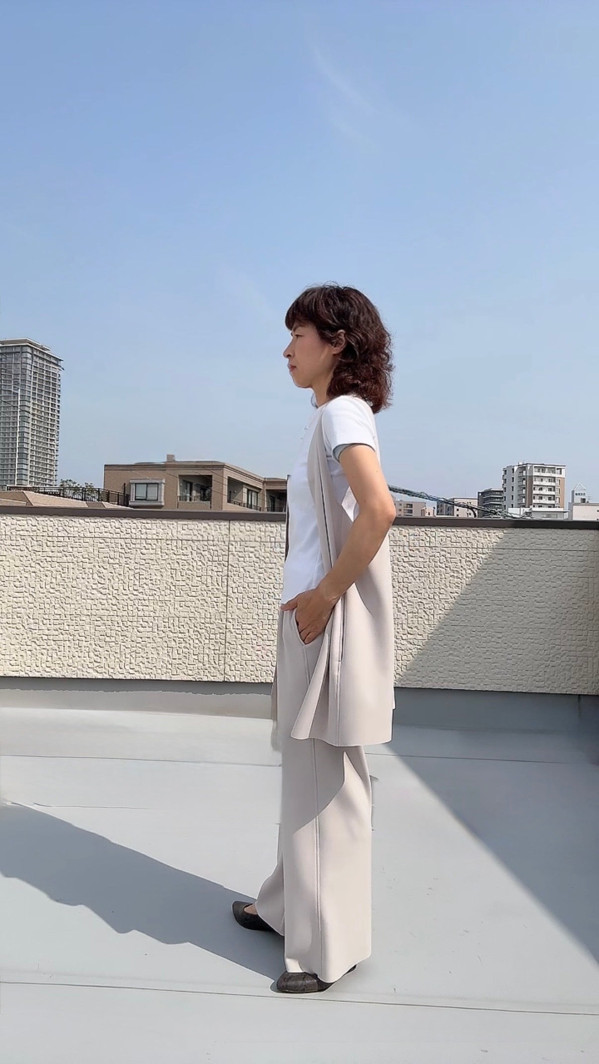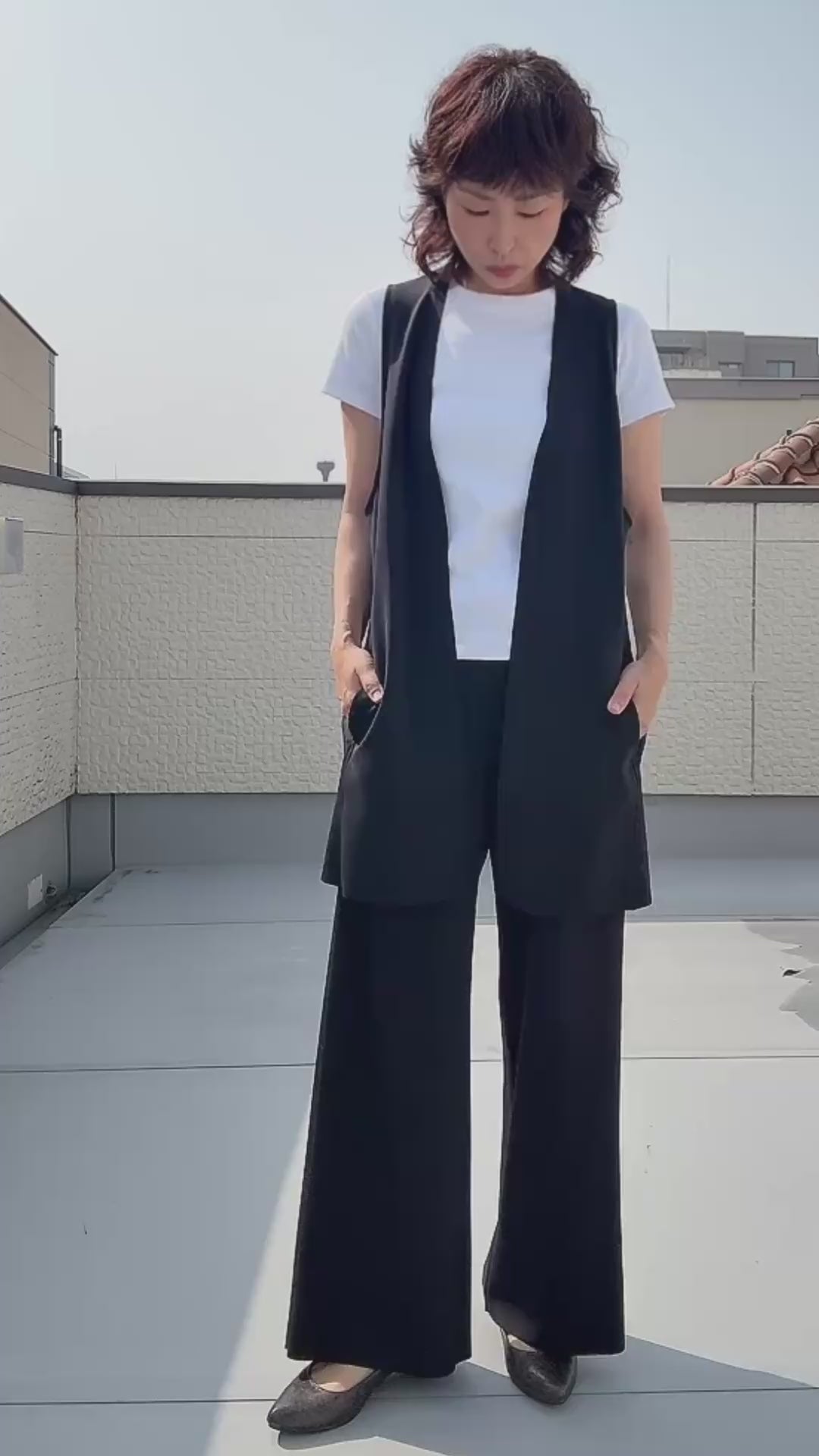 同素材のブラウスやボトムスと合わせた「3ピース」スタイルは圧巻の品格。ブラウスだけでなく、シンプルなニットやTシャツとも相性抜群です。