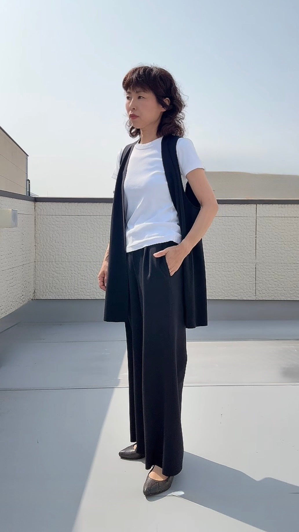 このジレの最大の魅力は、**「圧倒的な体型カバー力」と「着回し力の高さ」**です。