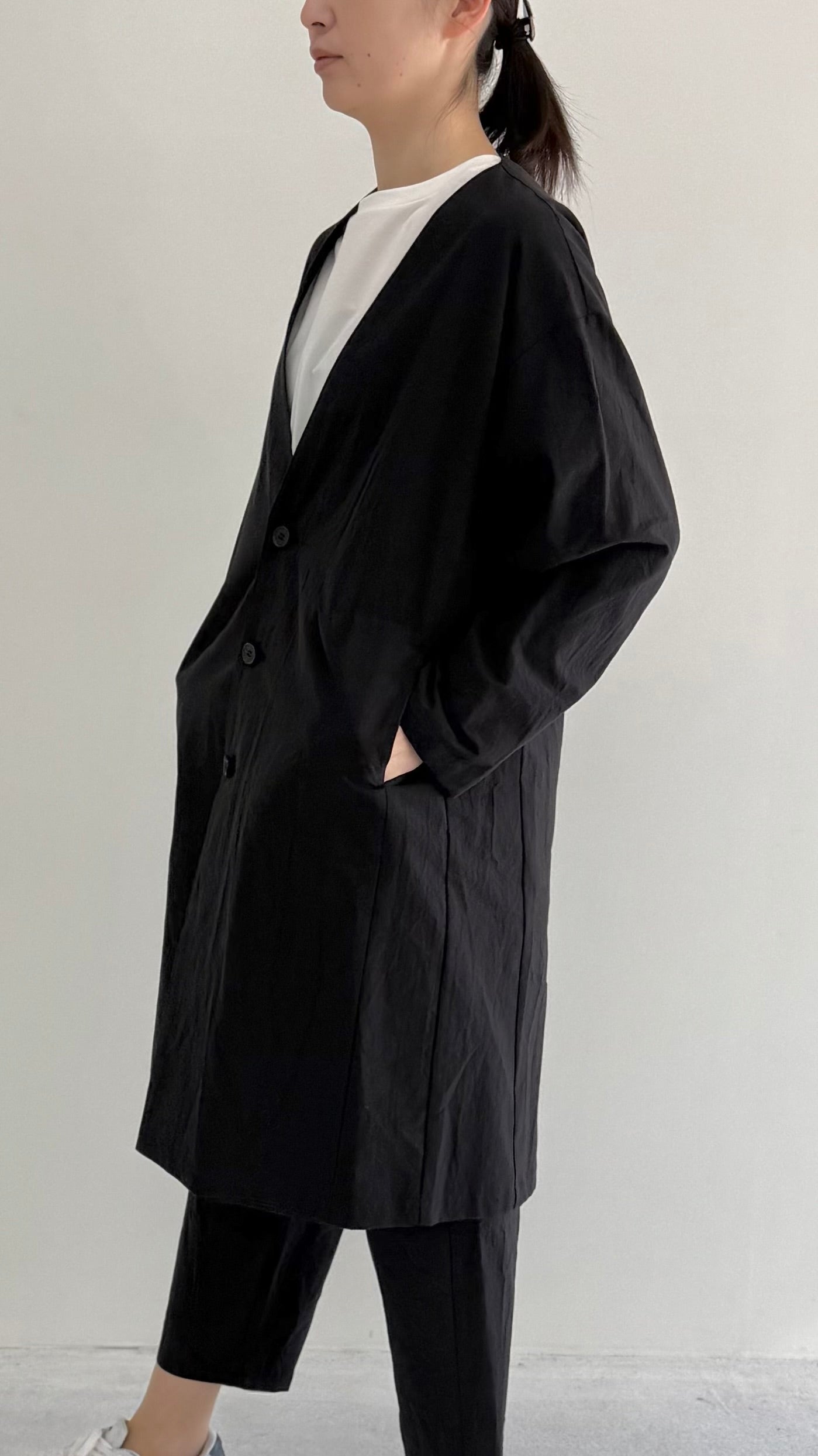 独特の風合いと軽やかさが特徴で、しなやかな素材感が着る人の動きにしなやかにフィットし、快適な着心地を提供します。